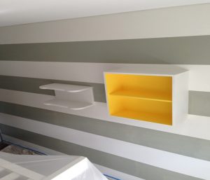 Pops of colour and perfect straight line symmetry create a playful look for this children’s room in Coogee